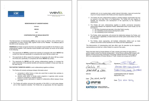 • 2014 India Gujarat auto show participation, MOU and international exchange programs, Korea further agreed to support an environmental company entering India