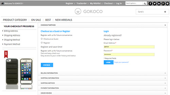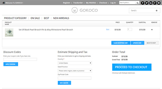 A good ecommerce platform will have couponing and discounting built in. For example, when you shop at the Gokoco store, the camera retailer, you’re given an opportunity to enter a discount or coupon codes as soon as you start the checkout process.