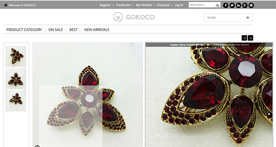 Gokoco product pages feature large, zoom ready images.