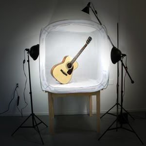 The next step is to set up your lighting. Utilizing two lights will result in much better photos than natural light. The ability to control the strength and position of the lighting will give you better results and help eliminate unwanted shadows. These lights need to be continuous and hot. Make sure your lights have stands so you can control how they are positioned and that they will remain still. Make sure to utilize a method to diffuse the light otherwise you will get harsh shadows. Diffusion is usually achieved through the use of umbrellas, light boxes, reflectors etc.