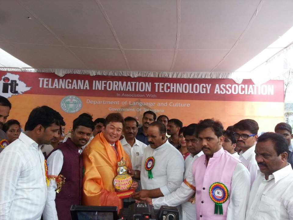 CEO Of Wevio, Mr.Calvin Yi received a plaque of appreciation from the State of Telangana, India in TITA Bonalu Jathara 2017.