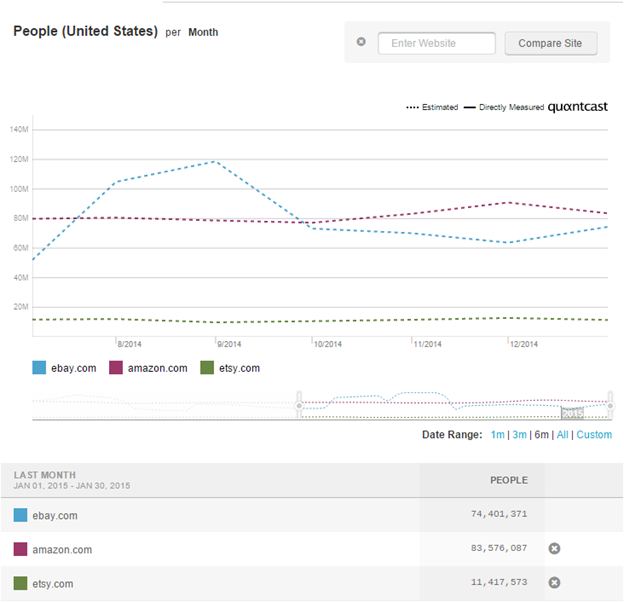 The visitors trends for ebay.com , Amazon.com And Etsy.com