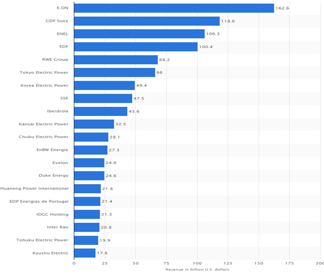 Electricity is generated in private or state-run electric utilities. The world’s largest electric utilities include Duke Energy, GDF Suez, Iberdrola and E.ON.